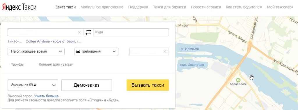 Если службе не удалось получить геоданные заказчика, точку отбытия он должен указать на карте. Для выбора конечного адреса клиент ставит метку на карте либо вбивает данные вручную. Из предлагаемых системой тарифов можно выбрать эконом или бизнес. Проконтролировать сделанный заказ можно в режиме онлайн.